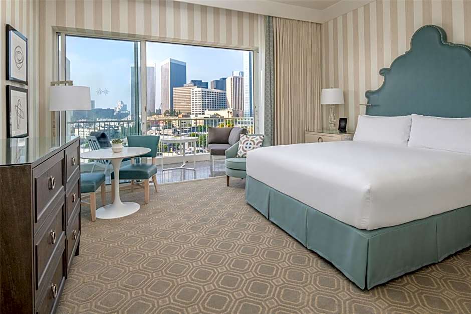 Enjoy balcony views of the city or pool, along with 344 sq. ft. of space, complete with king-sized bed and plush bedding for comfort. The Beverly Hilton signature amenities are also included in this deluxe room. Spacious bathrooms offer touches like Babor Signature bath amenities, terry towels, robes and a 13-inch LCD screen.